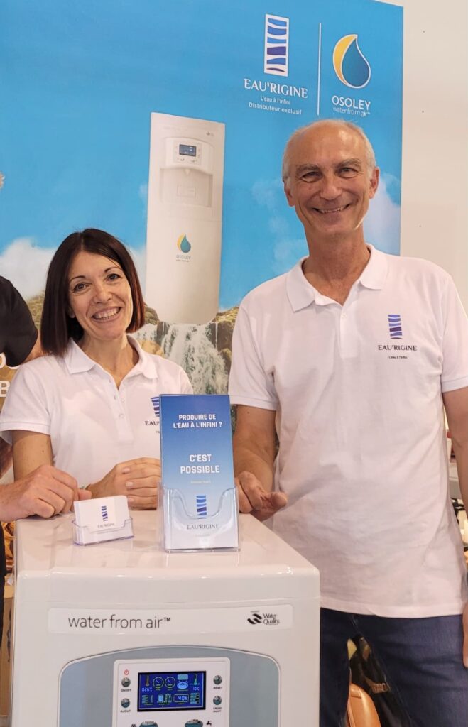 A l’eaurigine, c’est Christophe qui découvre le générateur d’eau atmosphérique en 2020. Stéphanie, passionnée à son tour, rejoint le projet. Ensemble, réalisant le potentiel incroyable de cette innovation face aux enjeux mondiaux de l’eau potable, ils deviennent distributeur exclusif des générateurs d’eau atmosphérique Osoley français.